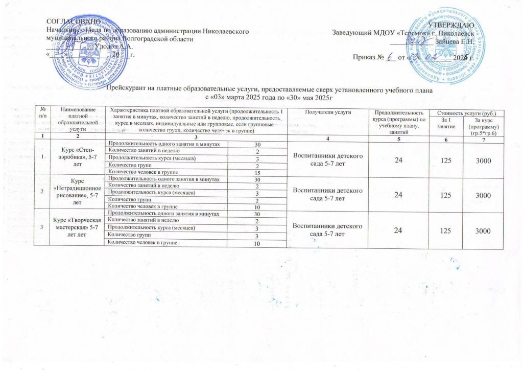 МДОУ "Теремок" г. Николаевска Волгоградской области оказывает платные дополнительные образовательные услуги по следующим направлениям:
